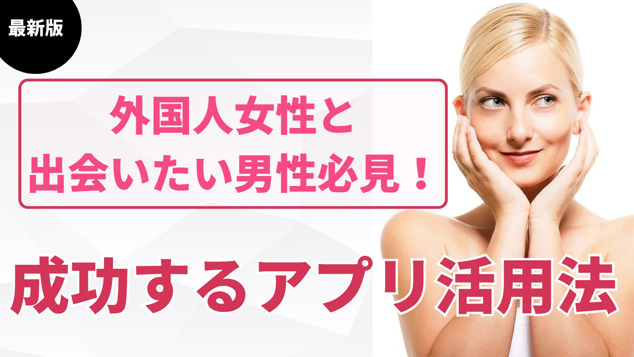 この記事は「外国人女性と出会いたい」と考えている日本人男性に向けて書かれています。 外国人女性と出会えるマッチングアプリの選び方や活用法、注意点、実際の体験談まで、初心者でもわかりやすく徹底解説します。 国際恋愛や国際結婚に興味がある方、... -